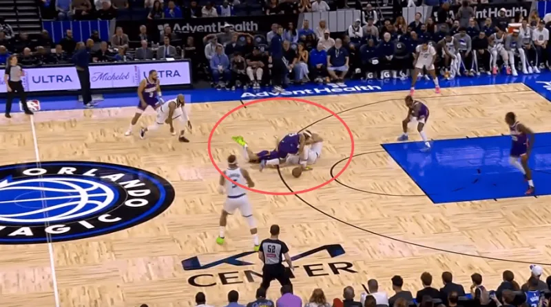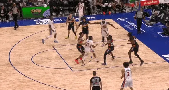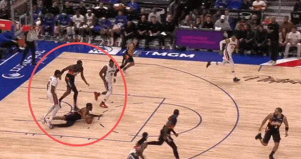 随后在奥萨尔合球准备起手终结的瞬间,古德温找准时机精准将球切掉后倒地保护球权。