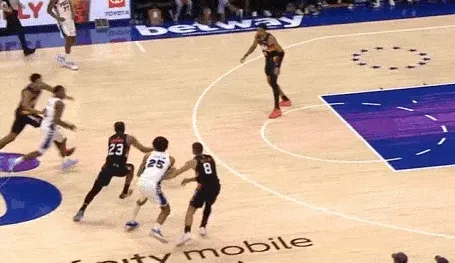 在巴洛击地出球给马克西的瞬间,古德温立即箭步加速上前眼疾手伸手将球破坏,和队友合力完成抢断就地推起反击。